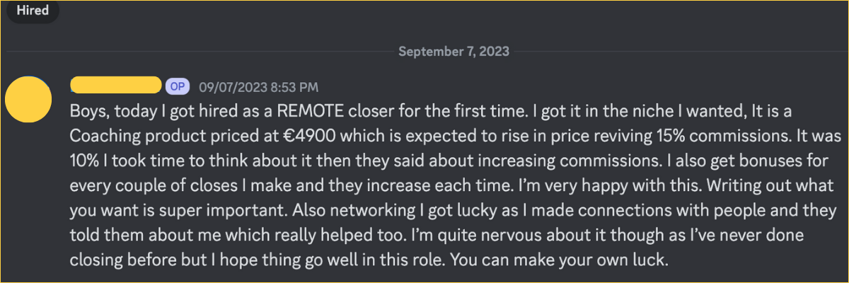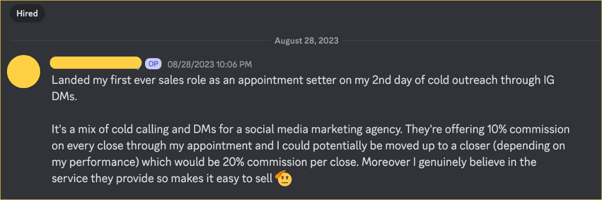 Landed a remote sales role on his SECOND DAY of outreach using our highly effective method.