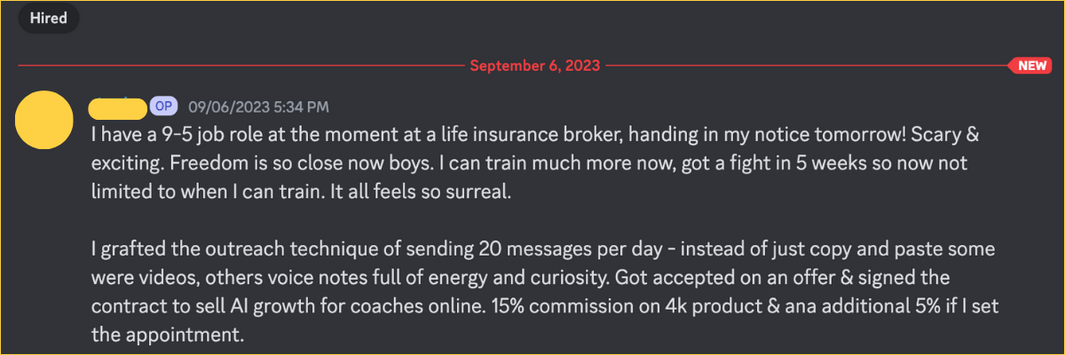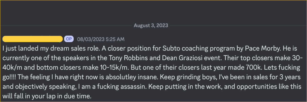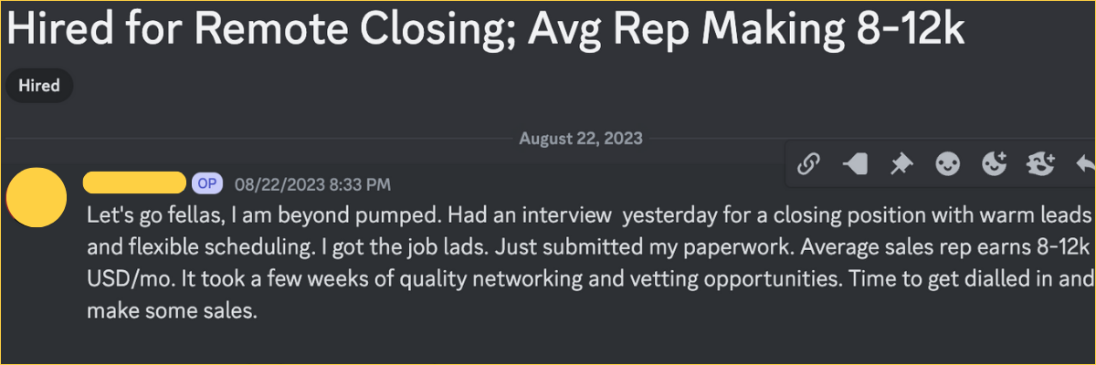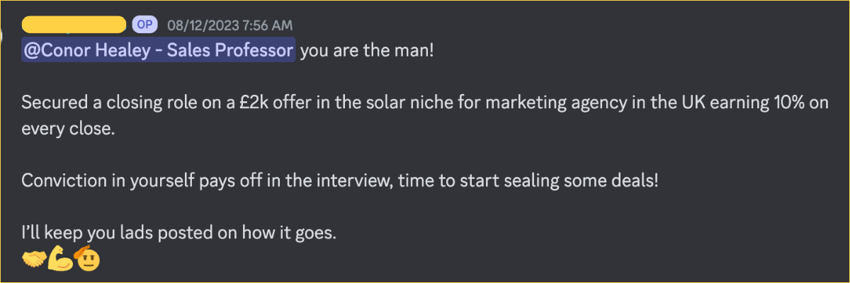 He'll be helping you on a daily basis in the Discord to help you improve your sales skills, answer your questions, and help you find legit, high paying jobs.