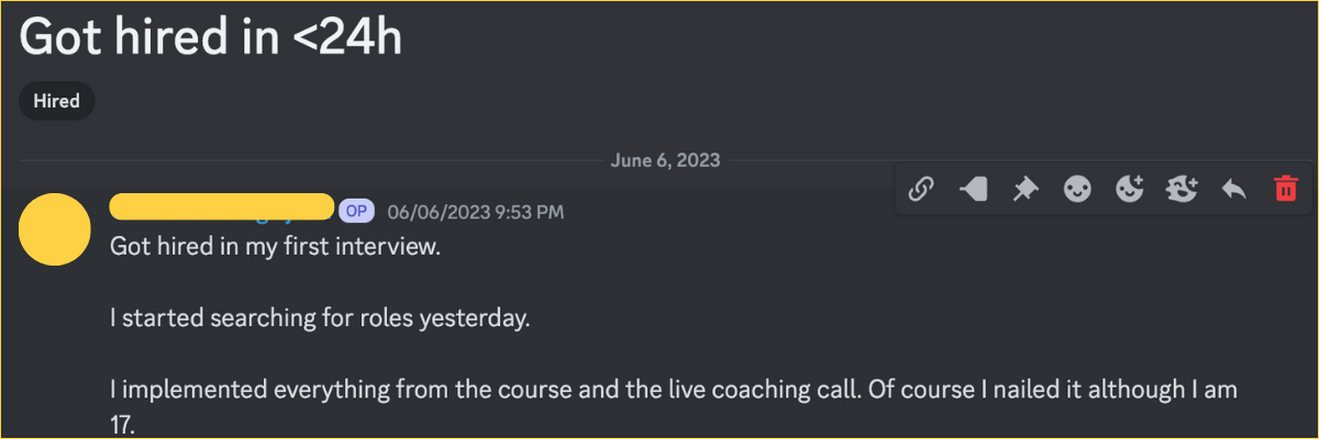 Just 17 years old and got HIRED in less than 24 hours from starting our methods.